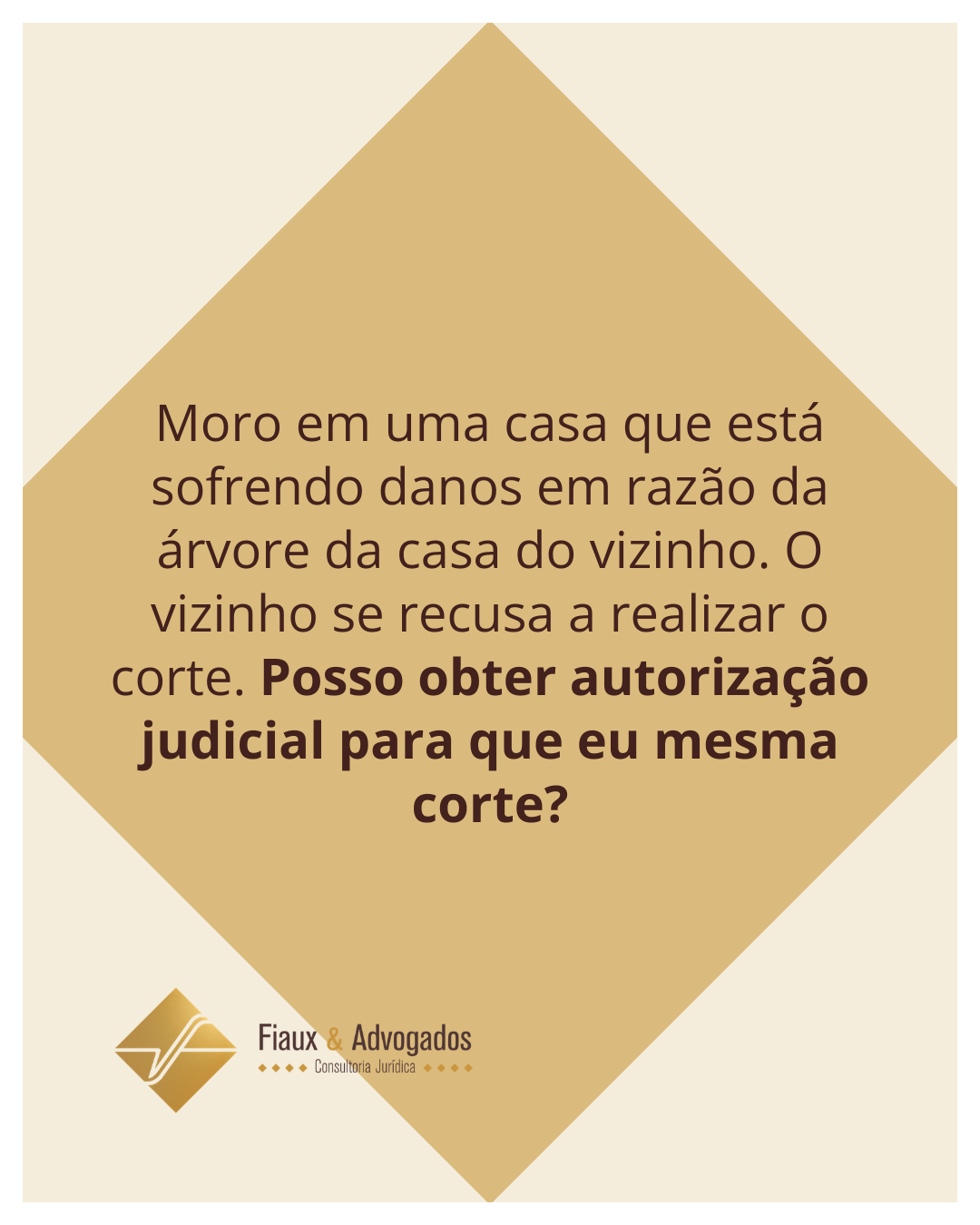 Moro em uma casa que está sofrendo danos em razão da árvore da casa do vizinho. O vizinho se recusa a realizar o corte. Posso obter autorização judicial para que eu mesma corte?