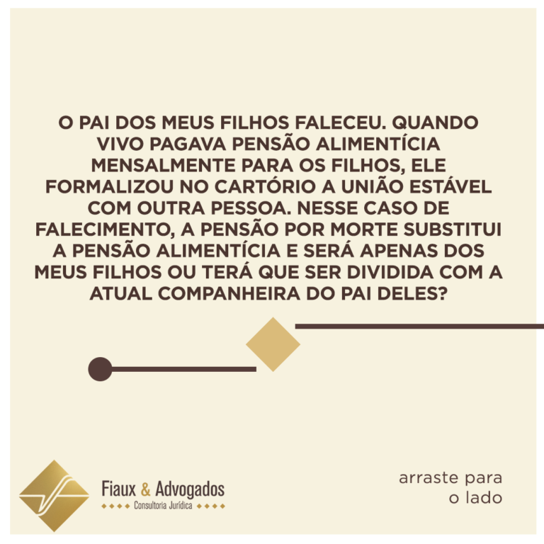O pai dos meus filhos faleceu. Quando vivo pagava pensão alimentícia mensalmente para os filhos, ele formalizou no cartório a união estável com outra pessoa. Nesse caso de falecimento, a pensão por morte substitui a pensão alimentícia e será apenas dos meus filhos ou terá que ser dividida com a atual companheira do pai deles?